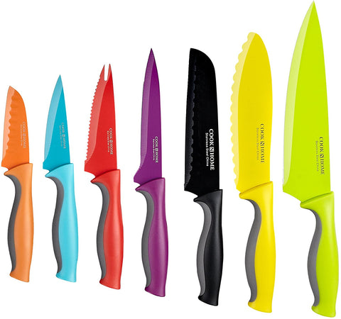 Cook N Home 14-Piece Coated Stainless Steel Knives, Comes with 7-Knife and 7-Blade Guards, Color Coded to Reduce Risk of Cross Contamination