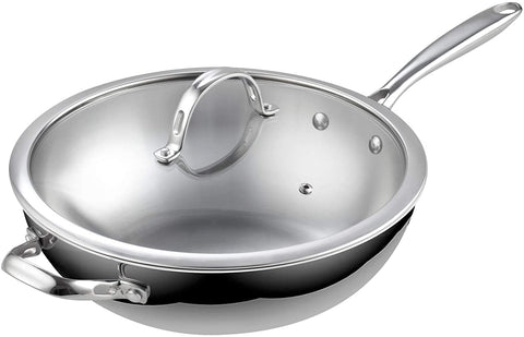 Cooks Standard 02595 Standard Stainless Steel Multi-Ply Clad Wok, 12-Inch with Glass Lid, Silver
