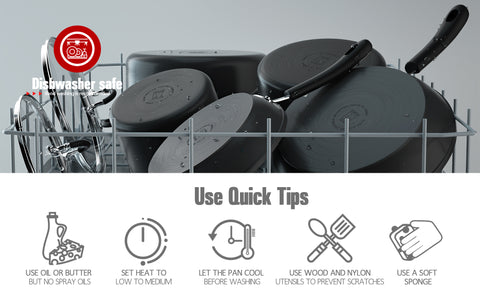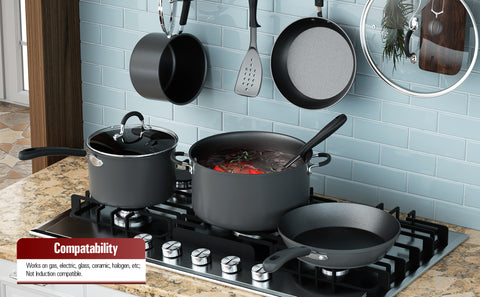- DURABLE and EVEN HEATING: The Hard Anodized aluminum cookware set features fast and even heat distribution, Premium material is more durable and corrosion resistant, what's more it won't react to acidic food.