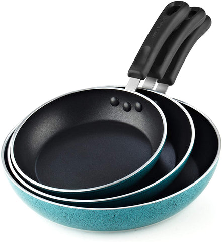 - 【Non-Stick Fry Pan Set】Nonstick Saute Fry Pan Set 3-Piece, Turquoise, Includes: 8-inch, 9.5-inch, and 11-Inch Nonstick Frying Pans.